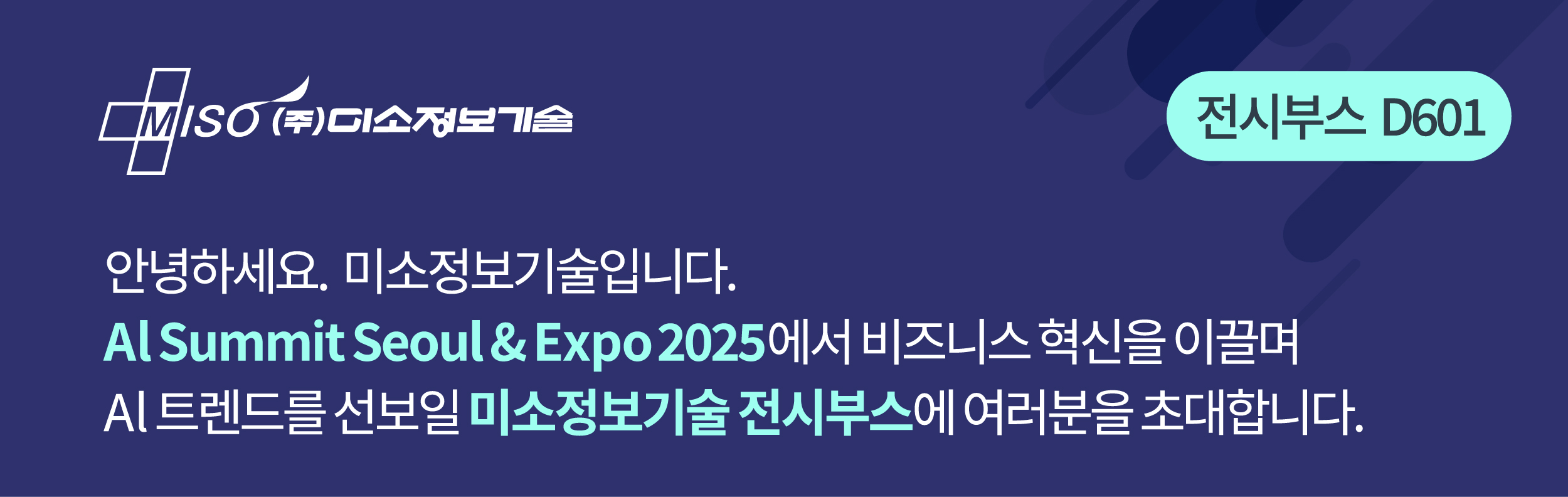 안녕하세요. 비즈니스 혁신을 이끌 AI 트렌드! 미소정보기술 전시부스에 여러분을 초대합니다😍